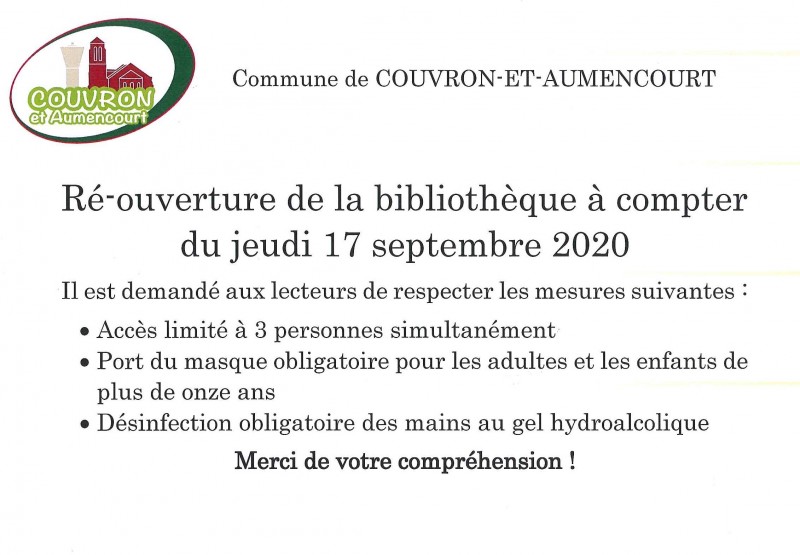 Published 16 septembre 2020 at 800 × 555 in Ré-ouverture bibliothèque.