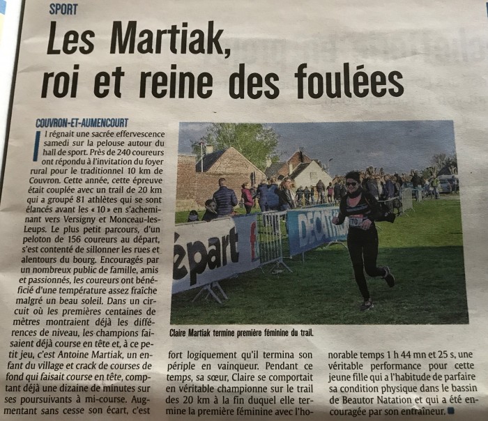 Published 23 avril 2019 at 700 × 604 in “Les Martiak, roi et reine des foulées” – L’Union du 19 avril 2019.